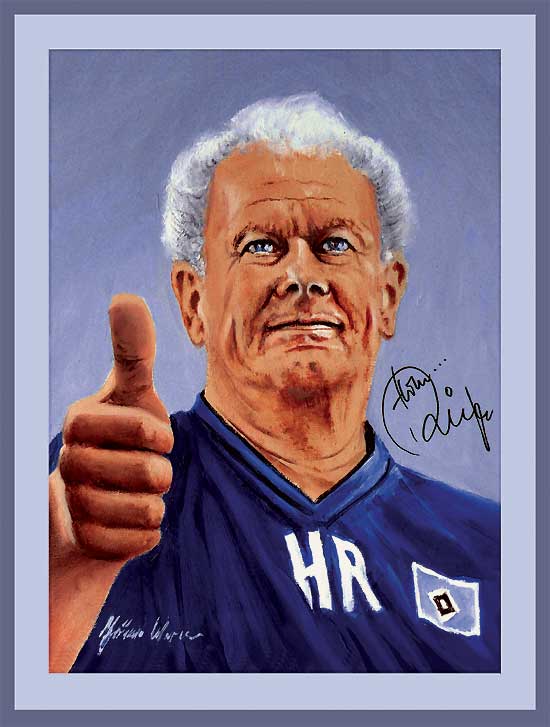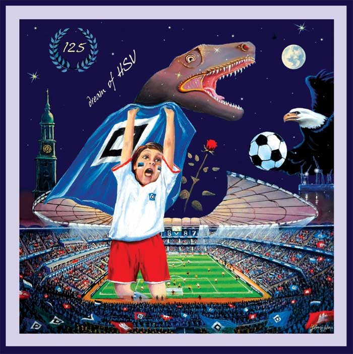 Als Hamburger liebe ich unsere schöne Stadt und trage schon seit ewigen Zeiten die Raute im Herzen. Ich habe die Oberligaspiele am Rotherbaum erleben dürfen und die großen Spiele unseres HSV im Volksparkstadion. Und nun hoffe ich wie jeder und jedes mal dass endlich wieder die Meisterschale nach Hamburg kommt. Als Künstler bin ich natürlich auch bestrebt etwas über unseren Verein zu bringen und so ist eben auch diese Bild entstandenund weitere hsv bilder