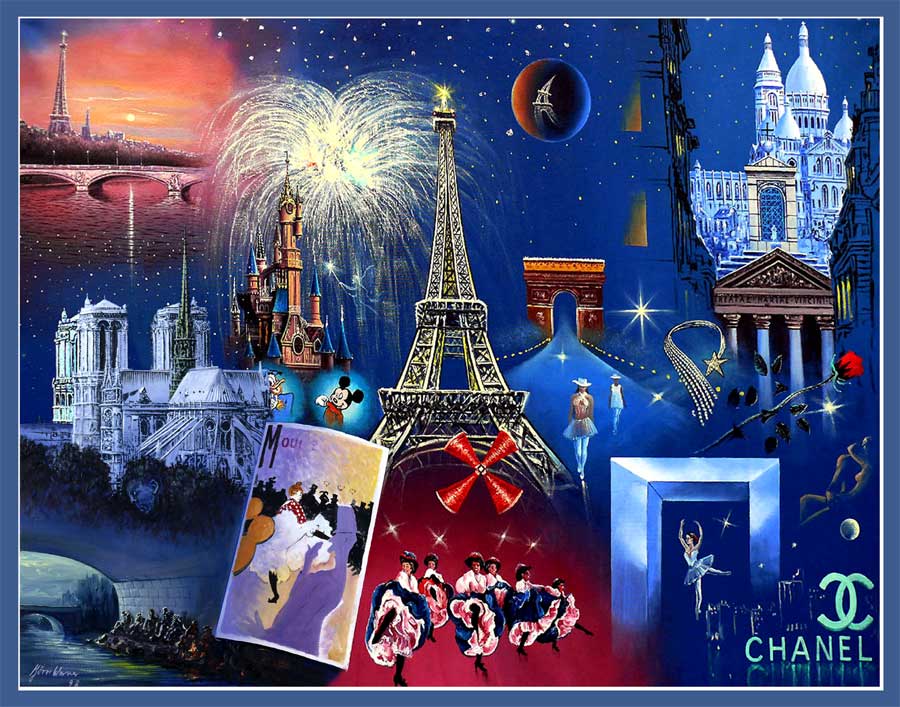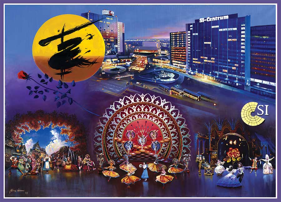 Öl auf Leinen/145x190cm von Loyd Webbers ins Bild gebracht Die drei Hauptbühnenbilder,von 'Die Schöne und das Biest' und das Logo von 'Miss Saigon.