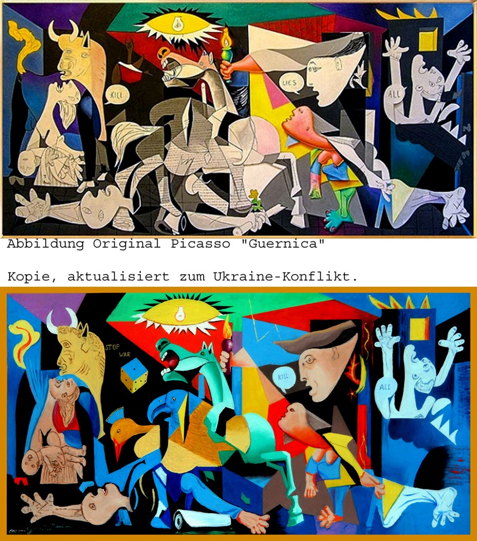 Da ich einige Details auf dem Original von Picasso nicht identifizieren konnte,habe ich diese Teile nach meinem Gefühl ersetzt ersetzt. (linker Bereich)